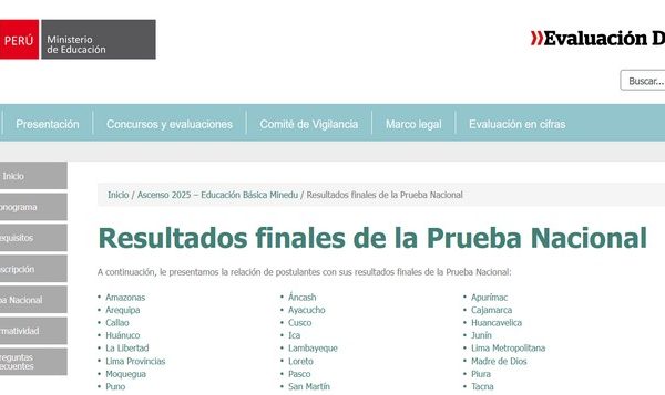 A continuación, le presentamos la relación de postulantes con sus resultados finales de la Prueba Nacional: Amazonas Áncash Apurímac Arequipa Ayacucho Cajamarca Callao Cusco Huancavelica Huánuco Ica Junín La Libertad Lambayeque Lima Metropolitana Lima Provincias Loreto Madre de Dios Moquegua Pasco Piura Puno San Martín Tacna Tumbes Ucayali